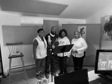 John had worked with a group of gospel singers from Coatesville, PA in a production of The Gospel of Colonus at the First Unitarian Church in Philadelphia. Carla Harvey was in that production, and she was a dear friend of John’s. “I knew I had to call on Carla to bring the Church to this production and lift the audience up,” John explained. Carla brought us to the attention of the First Calvary Church in Coatesville, PA and enlisted Pastor Roland Holmes to sing lead vocals with Carla, Roberta Scott and Ella Marie Mobley on background vocals. The session was magical and culminated with the Pastor Roland Holmes, Jr. spontaneously improvising on a last take with gospel hymn, Higher Ground.